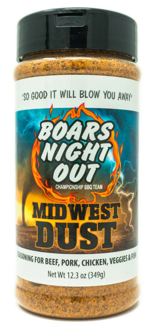 Midwest Dust is the newest companion to the already widely successful Boars Night Out Championship BBQ Team and Catering line up of seasonings and rubs. Just like their BBQ Rub, Midwest Dust lines up with all the flavors of Boars Night Out White Lightning for the opportunity to layer flavors on your favorite steak or cut of beef! Has been working really well on the SCA Competition circuit in testing for over a year can be used as a finishing dust in competition BBQ and grilling.