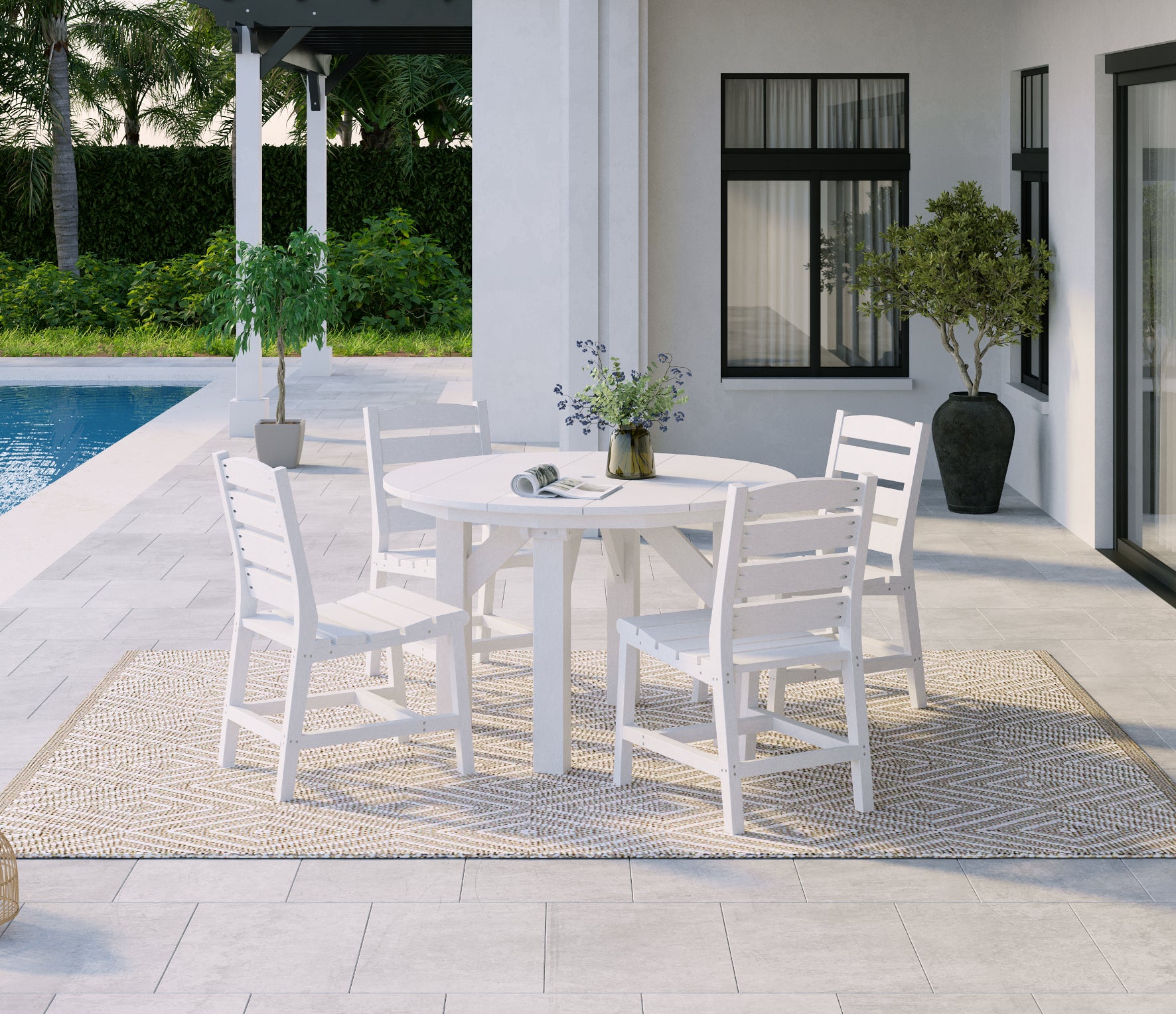 Introducing the T05 48” Round Dining Table. Perfect for seating four, this elegant table is built to withstand all weather, making it ideal for any setting. Mix and match with any of our dining-height chairs. This Round Dining Table features a 2" Umbrella hole.