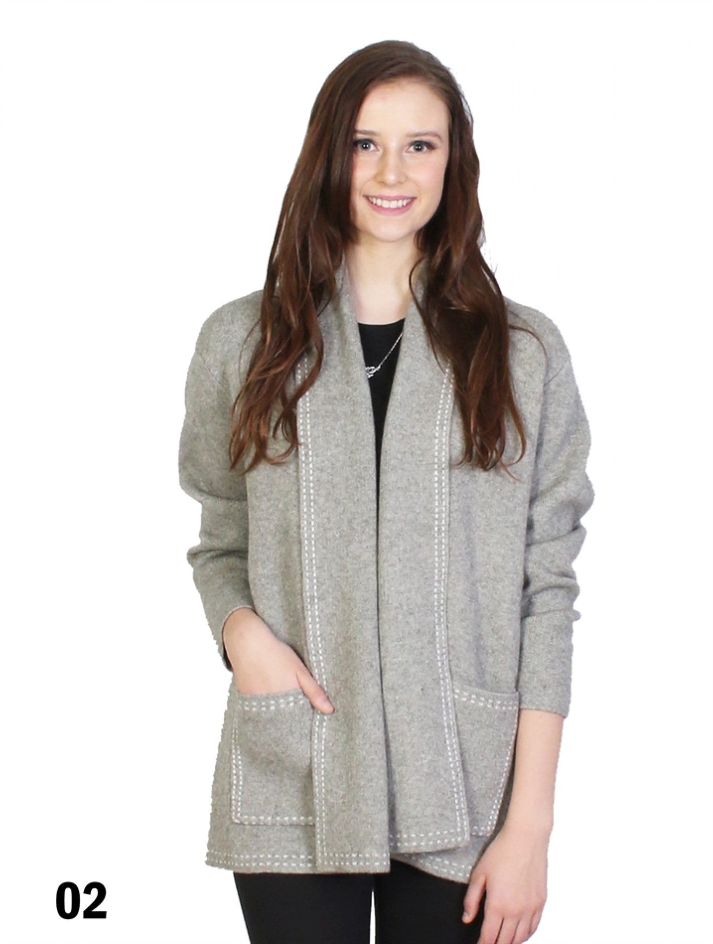 Long sleeve jacket with pockets and open front. Carefully designed with a dotted trim. The high quality, luxurious-feeling material is soft to the touch, and is incredibly dense to help you keep warm. Tailored with a high/low hem and a highlight trim. Wear over any casual or business casual occasions.
