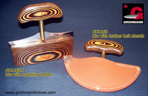 GROHMANN KNIVES - Ulu knife w/ matching block holder - $80.00