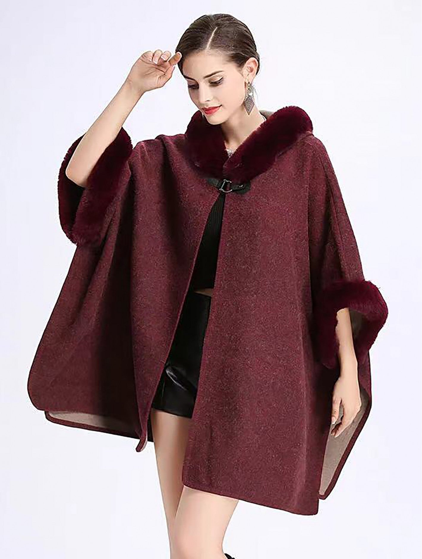 Get this Plush Wool Feeling Hooded Cape to wrap yourself up in and keep warm in the cooler weather. Designed with plush hood and sleeves accent, faux leather button at the front, it not only provides an extra layer of warmth, but a stylish accent to your whole outfit. Perfect to pair with any legging/pants. Compliments any figure from small to plus size.