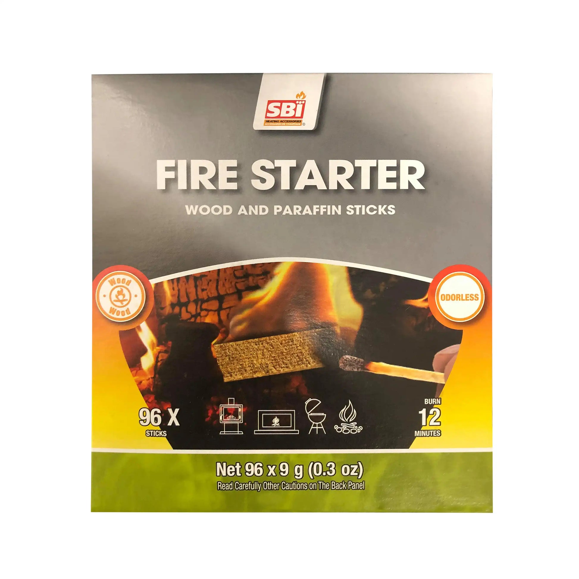 96 wooden sticks and wax. A piece burns up to 12 minutes.